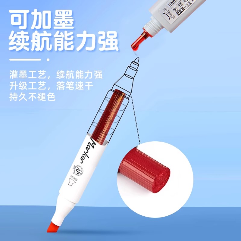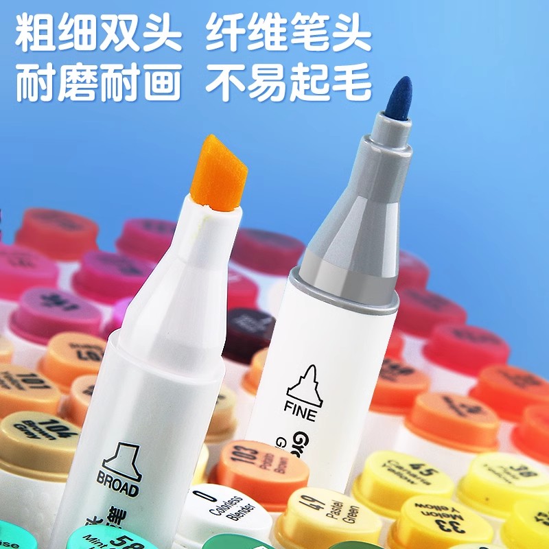 掌握双头马克笔三角杆学生美术专用油性可加墨大容量儿童彩色笔画笔24色48色60色80色水彩笔无毒动漫系