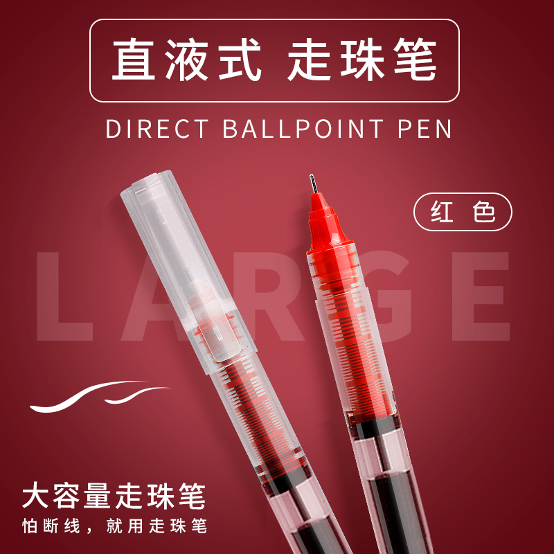 直液式0.5mm走珠红笔老师专用批改笔ins中性笔作业试卷红笔芯