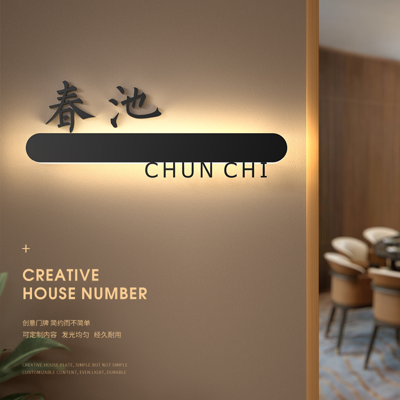 新中式餐饮包厢亚克力发光门牌定制高档酒店餐厅包间名字牌茶楼国风复古门牌号带灯牌春夏秋冬门口雅称指示牌