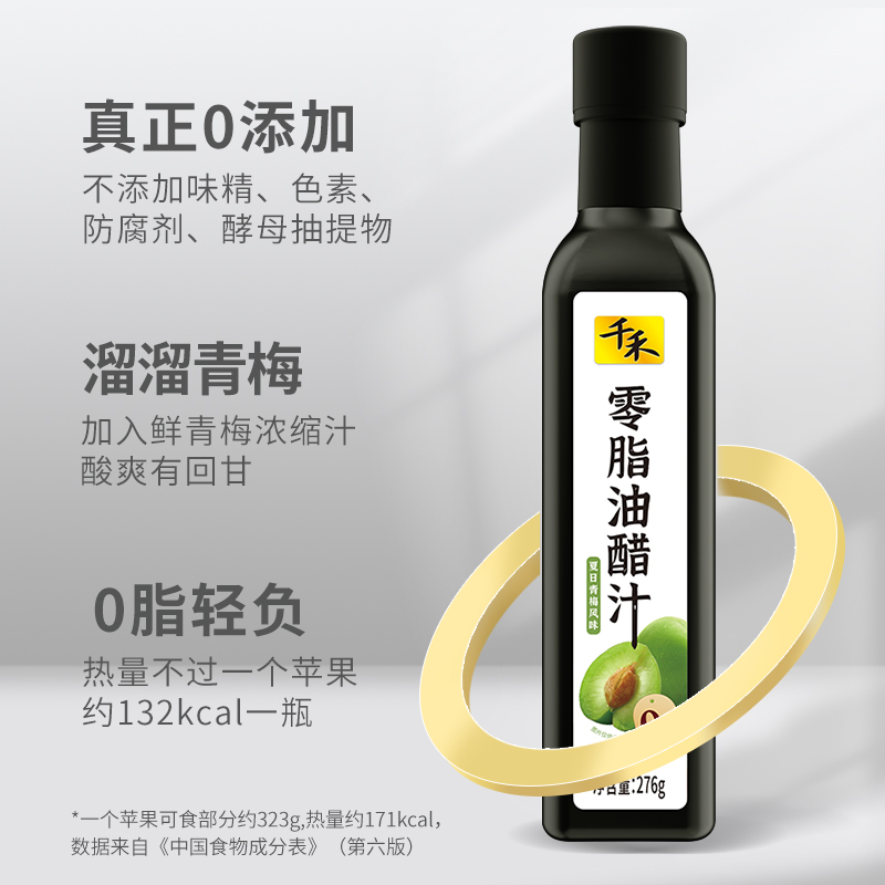 千禾零脂油醋汁276g瓶装日式轻食蔬菜伴侣凉拌点蘸沙拉汁水煮肉