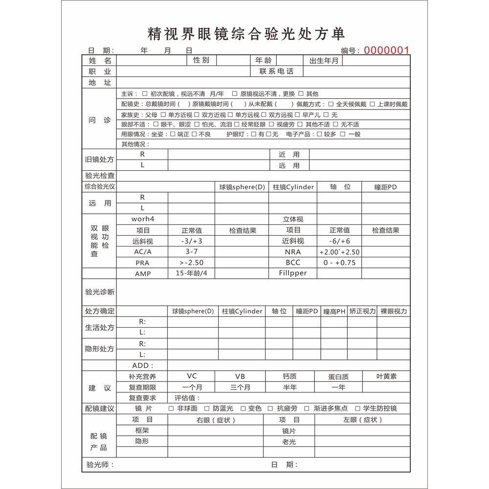 眼镜店验配购物单据定配销售配镜单验光处方单定制彩色三联单