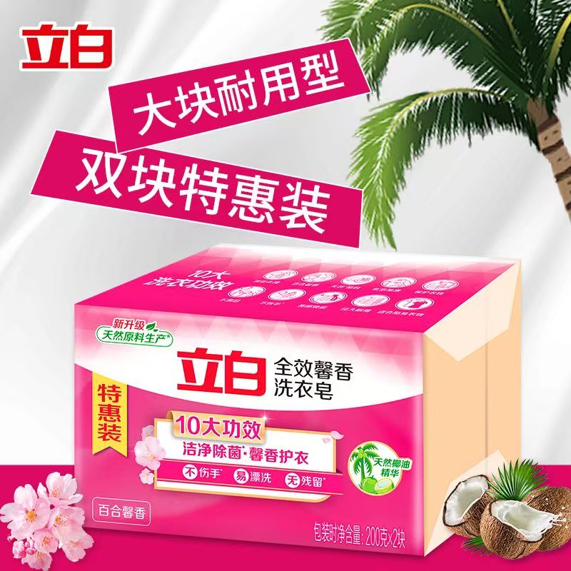立白全效馨香洗衣皂天然椰油深层洁净去污渍持久留香200g*2不伤手