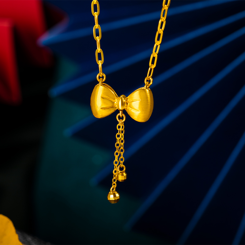 【中国黄金官方店】足金5G黄金蝴蝶结套链时尚简约气质首饰新品