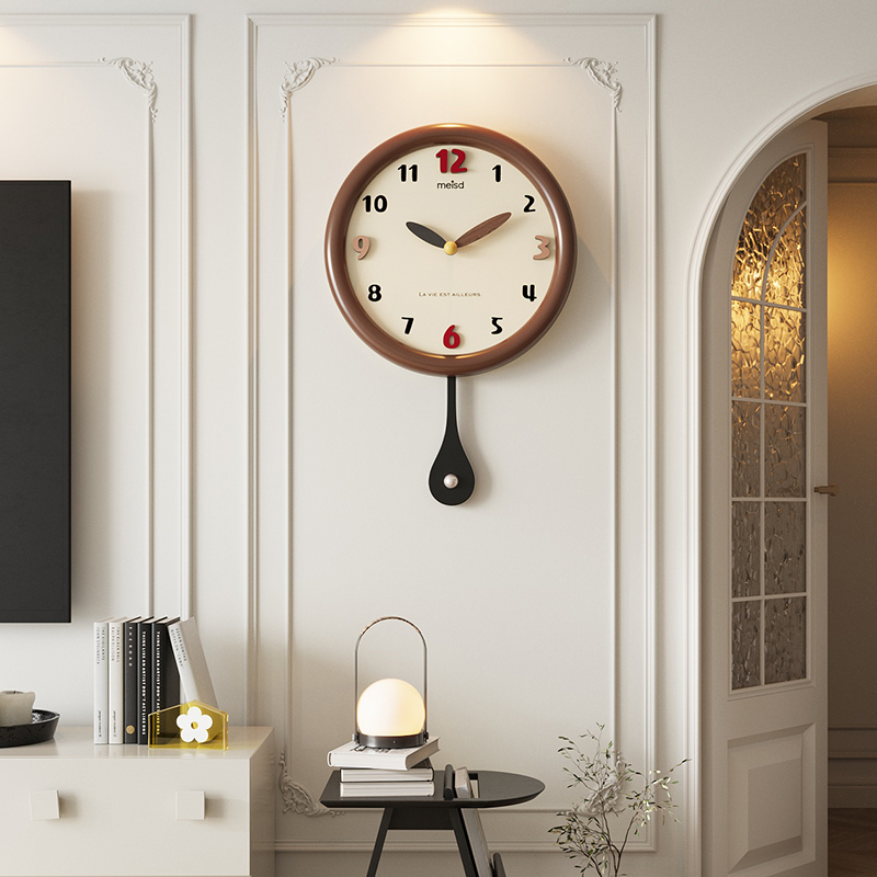 美世达中古风家用钟表挂钟客厅2025新款创意复古简约现代挂墙时钟