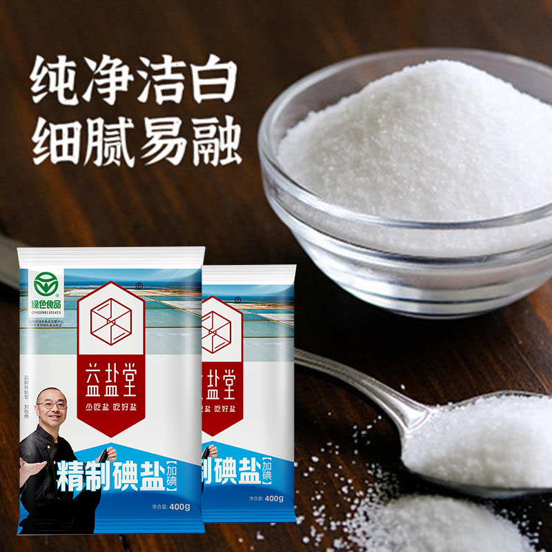 益盐堂加碘精制食用盐整箱批发40斤餐饮食堂调味腌制家用深井细盐