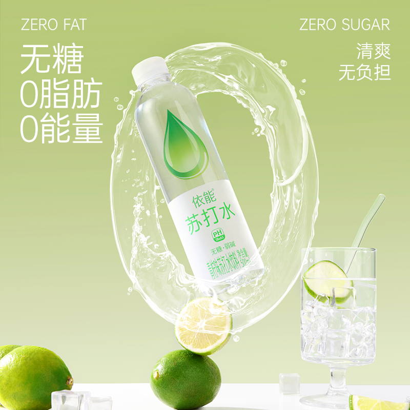 依能苏打水500ml*12瓶整箱弱碱锌青柠白桃饮用水饮料碱性瓶装强化
