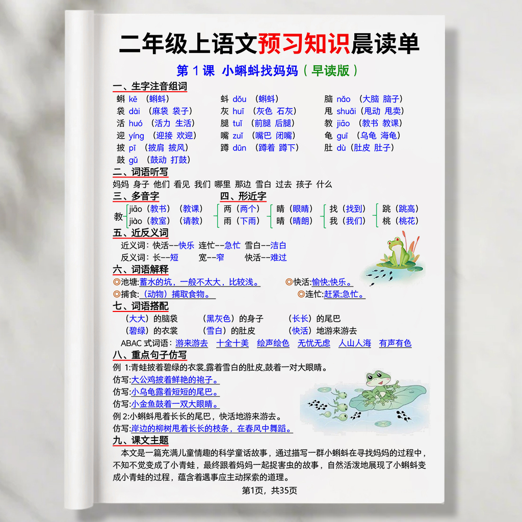 2025新版二年级上册语文课内必背考点重点知识点总结考试复习资料