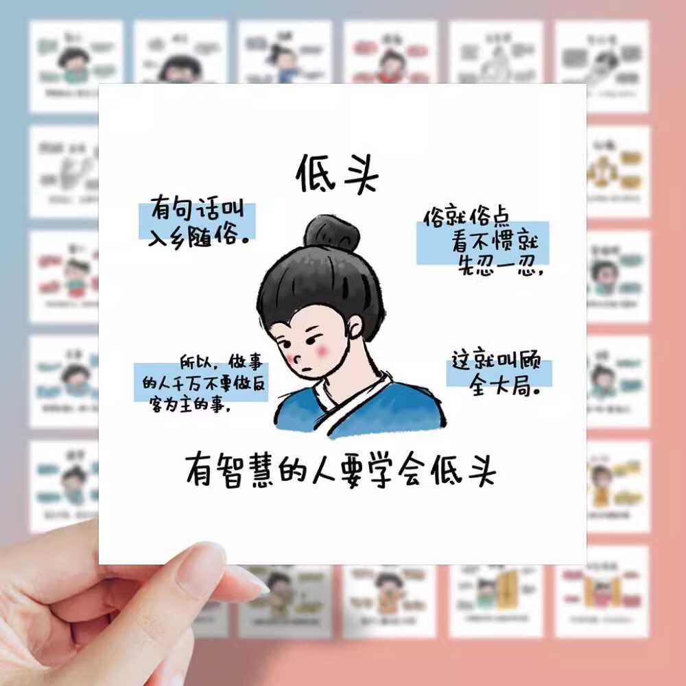 孙子兵法文学爆款贴纸创意趣味理论激励文案小画贴手账贴画搞笑