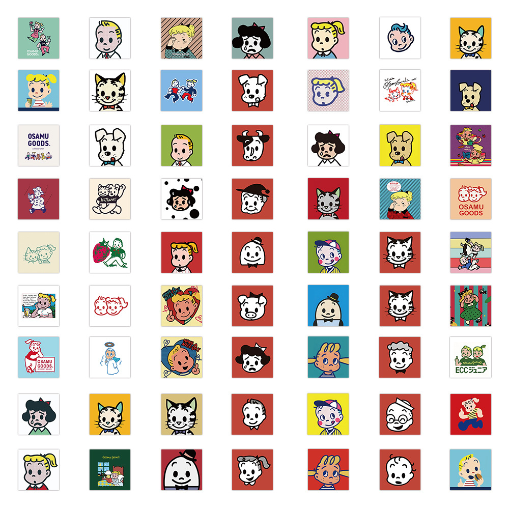 60张日系潮牌原田治贴纸ins风卡通可爱人物装饰行李箱手账小贴画