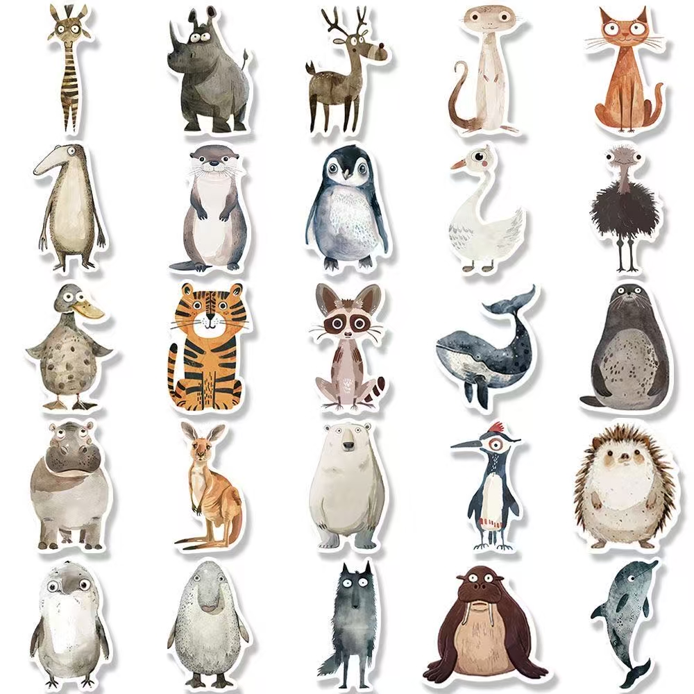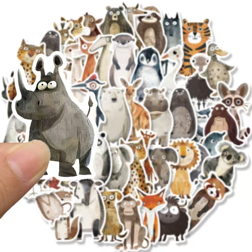 新款搞怪小动物可爱趣味涂鸦装饰手机壳笔记本防水粘贴画diy100张