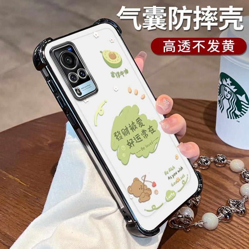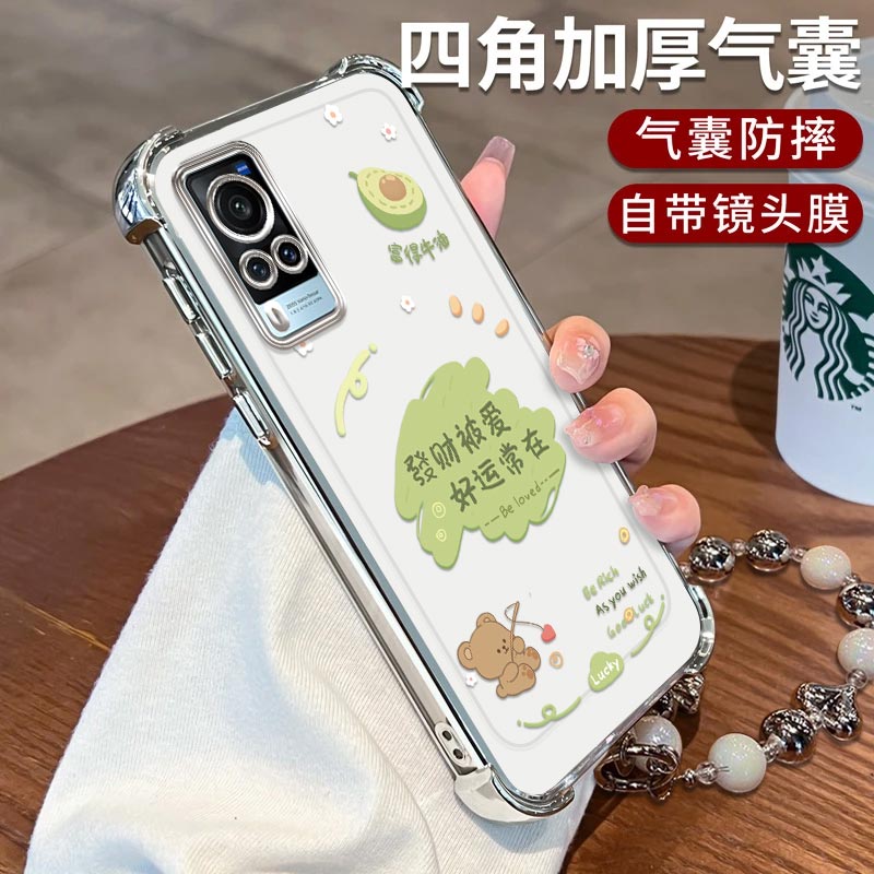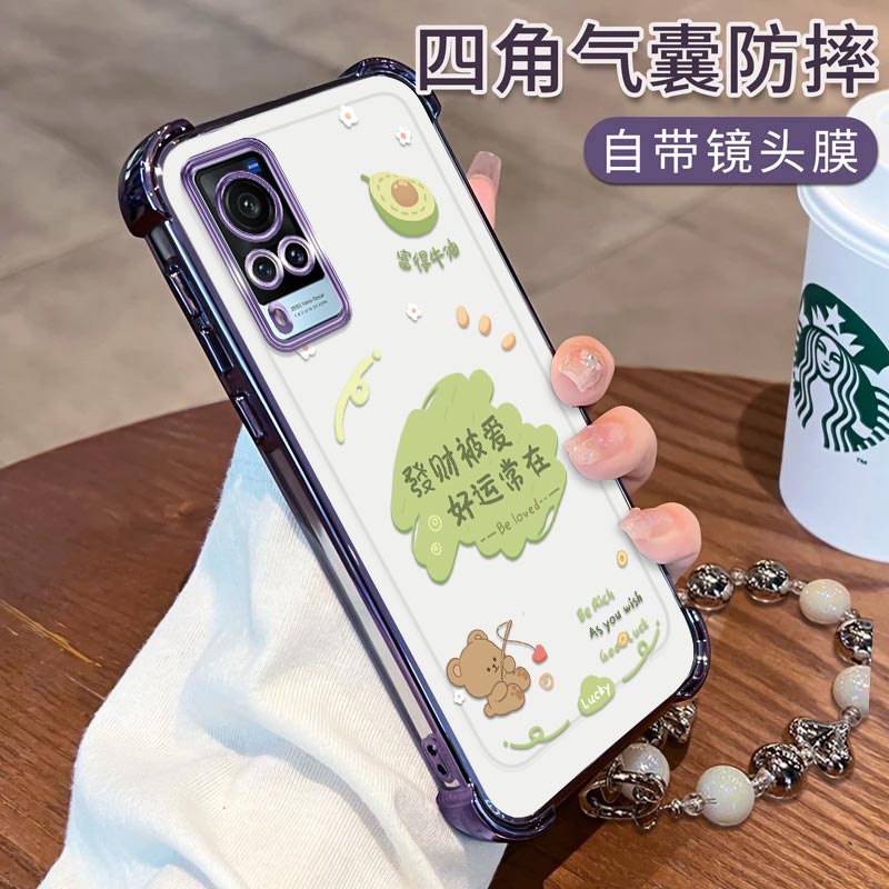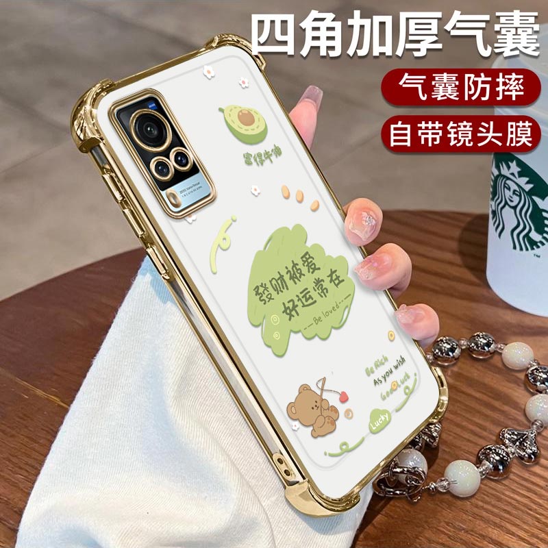 适用VIVOX60手机壳发财被爱电镀四角防摔VIVOX50简约硅胶气囊全包vivoX60Pro高颜值手链女款新款保护套