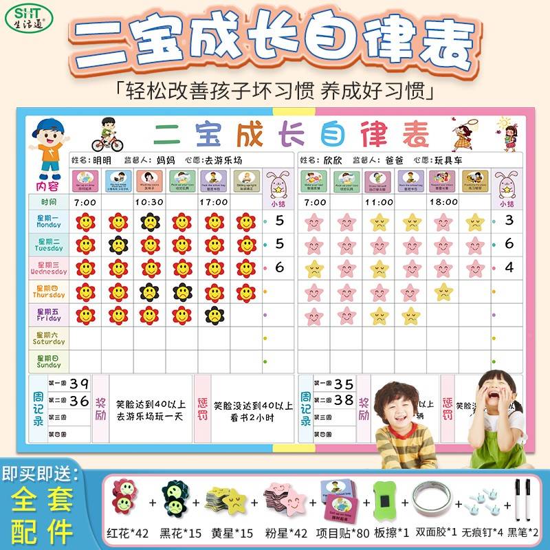 暑假期二 宝录儿假成无品牌/长自律表家庭好习养记表家录用奖励小
