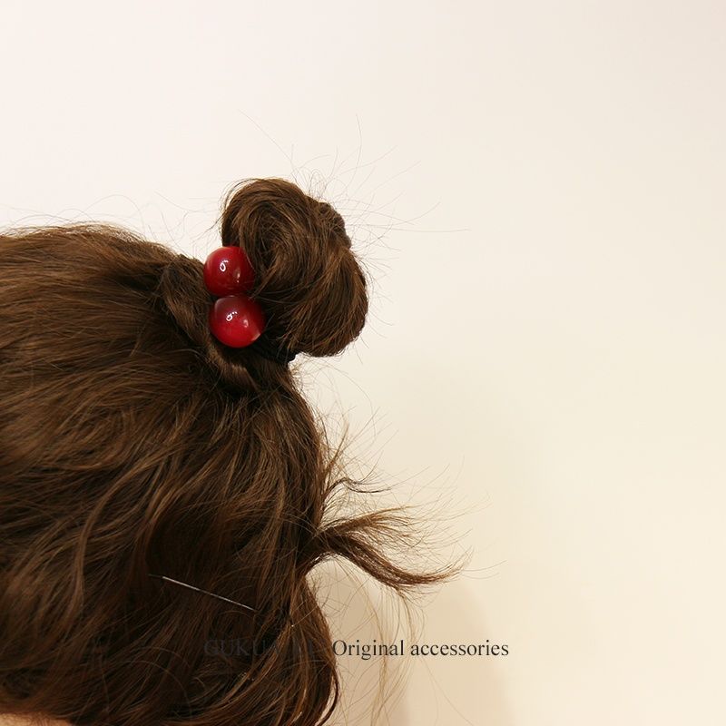 高颜值红色发圈樱桃皮筋简约高弹力网红可爱水果头绳日系双球发绳