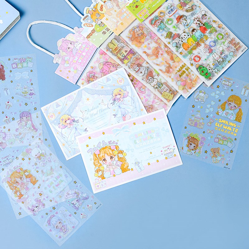 3D立体浮雕贴纸女孩儿童卡通动物宝石贴画钻石手机壳装饰水晶滴胶防水手帐高透明贴贴纸水杯手机后壳玩具家族