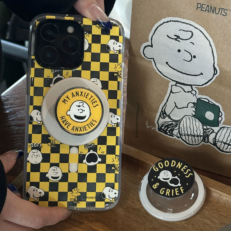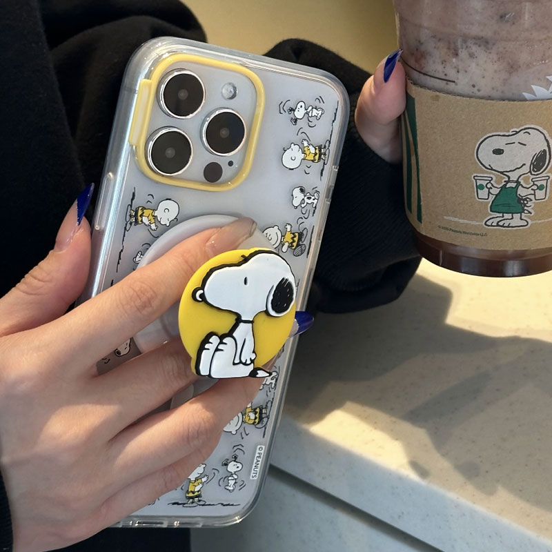 卡通史努比系列适用安卓苹果手机气囊泡骚支架流沙磁吸magsafe