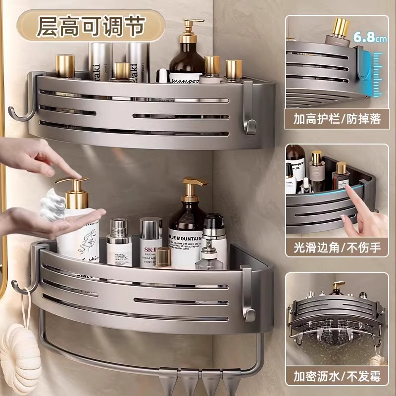 枪灰卫生间置物架浴室三角架子免打孔壁挂厕所洗手间洗漱台收纳架