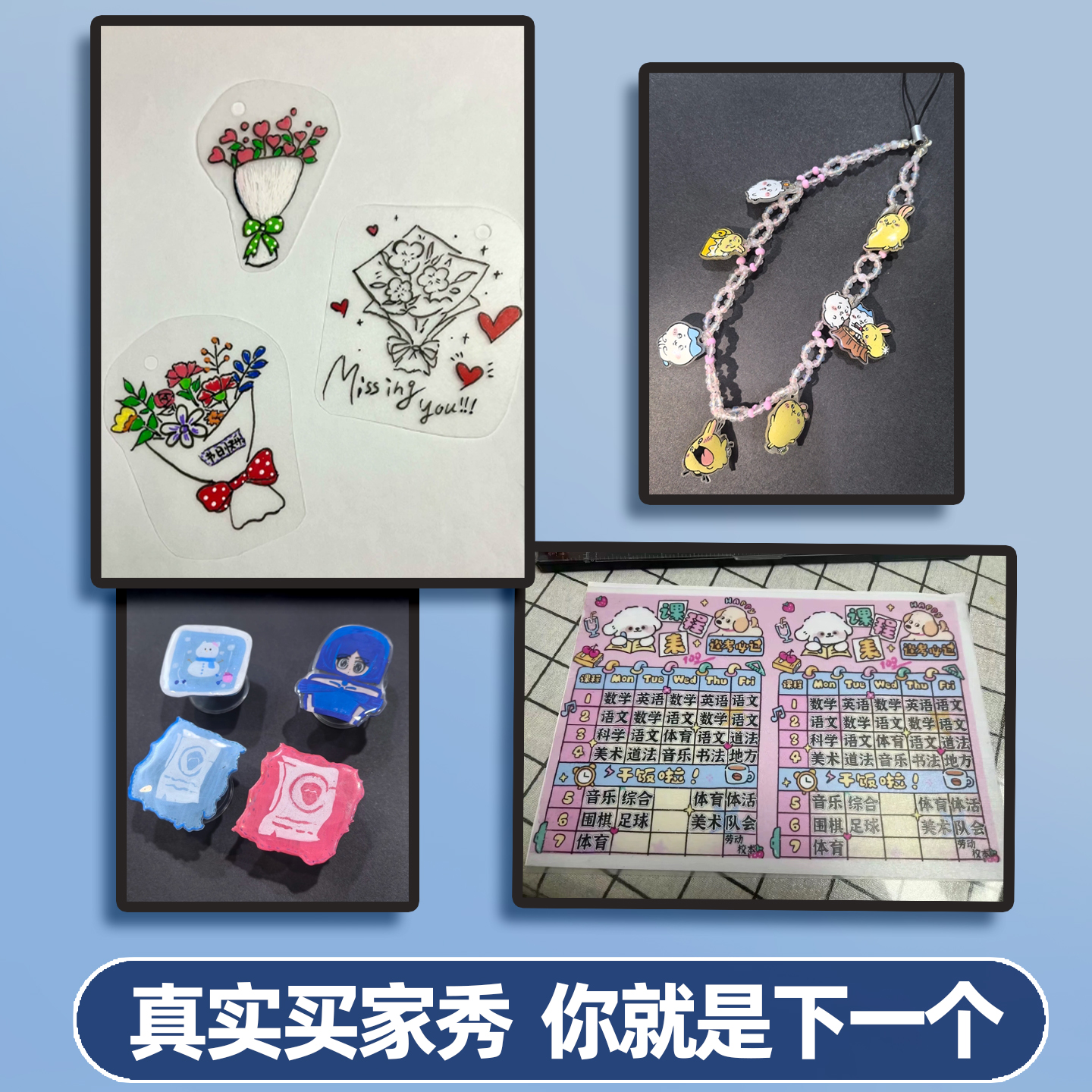 打印热收缩塑可打印热缩片diy套装纸儿童材料包a4半磨砂透明高品质全透明已打磨手工压缩0.3mm0.2发簪a5配件