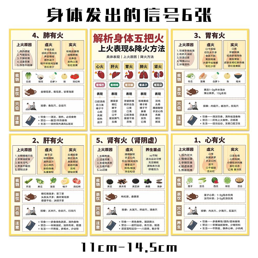 身体发出的信号健康知识科普解析身体五把火上火原因降火办法贴纸