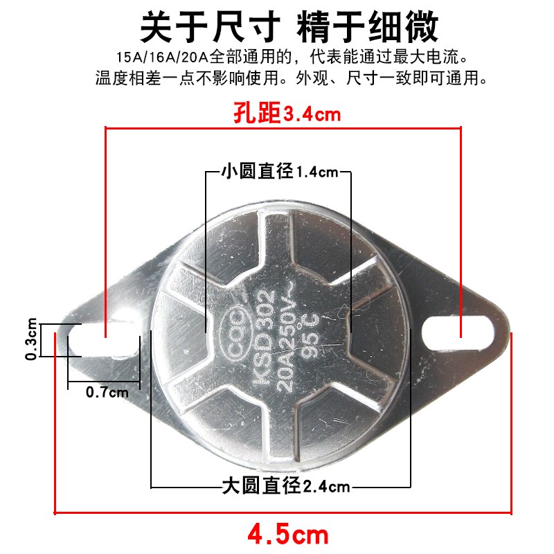 KSD302电热水器温控限温器热保护器4脚20A93度开关温度控制器