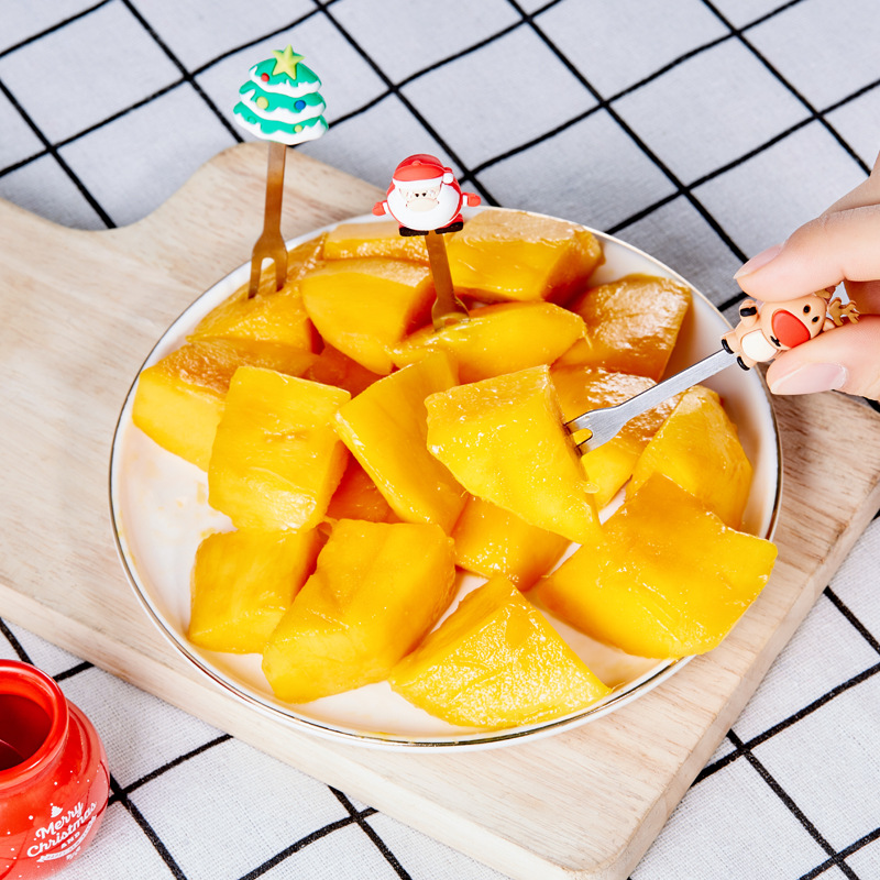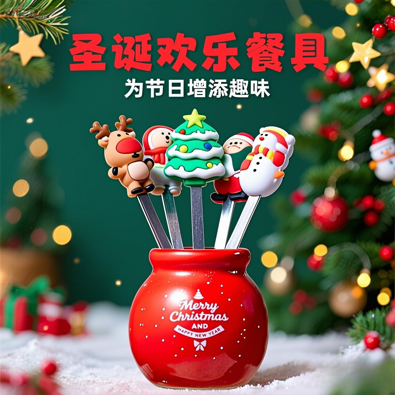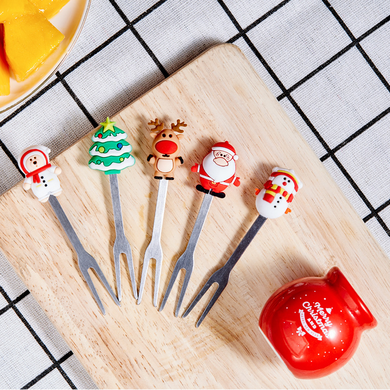 水果叉不锈钢叉跨年圣诞节礼物硅胶水果叉创意带底座水果叉套装