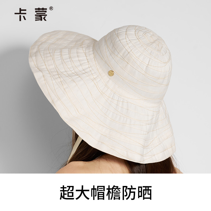 卡蒙帽子女遮阳防晒帽新款遮脸大檐飘带渔夫帽时尚防紫外线太阳帽