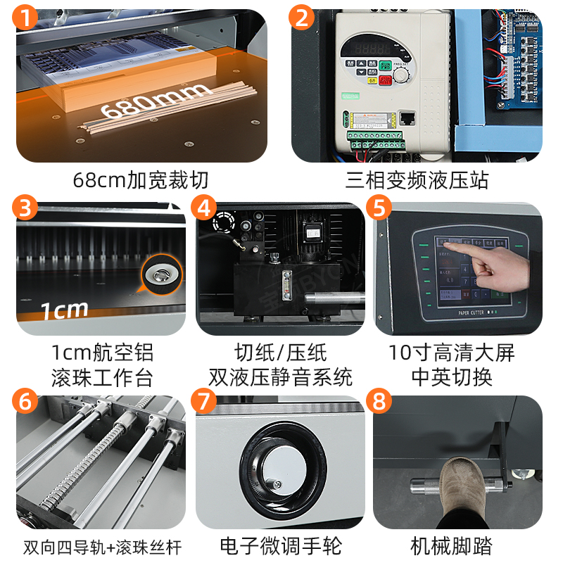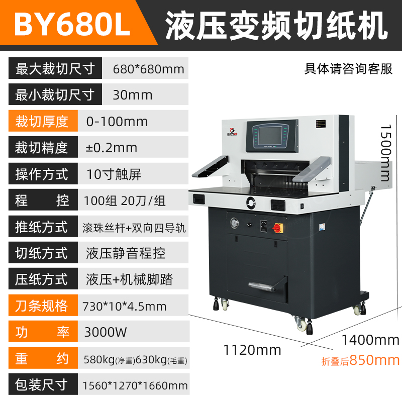 BY680L双液压切纸机变频静音自动裁纸机多功能智能印后设备书本修边相册不干胶PVC标书文件裁切图文装订配套