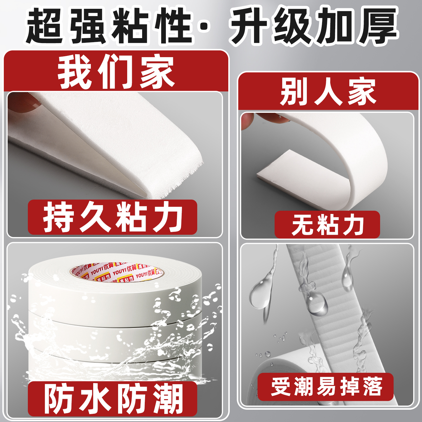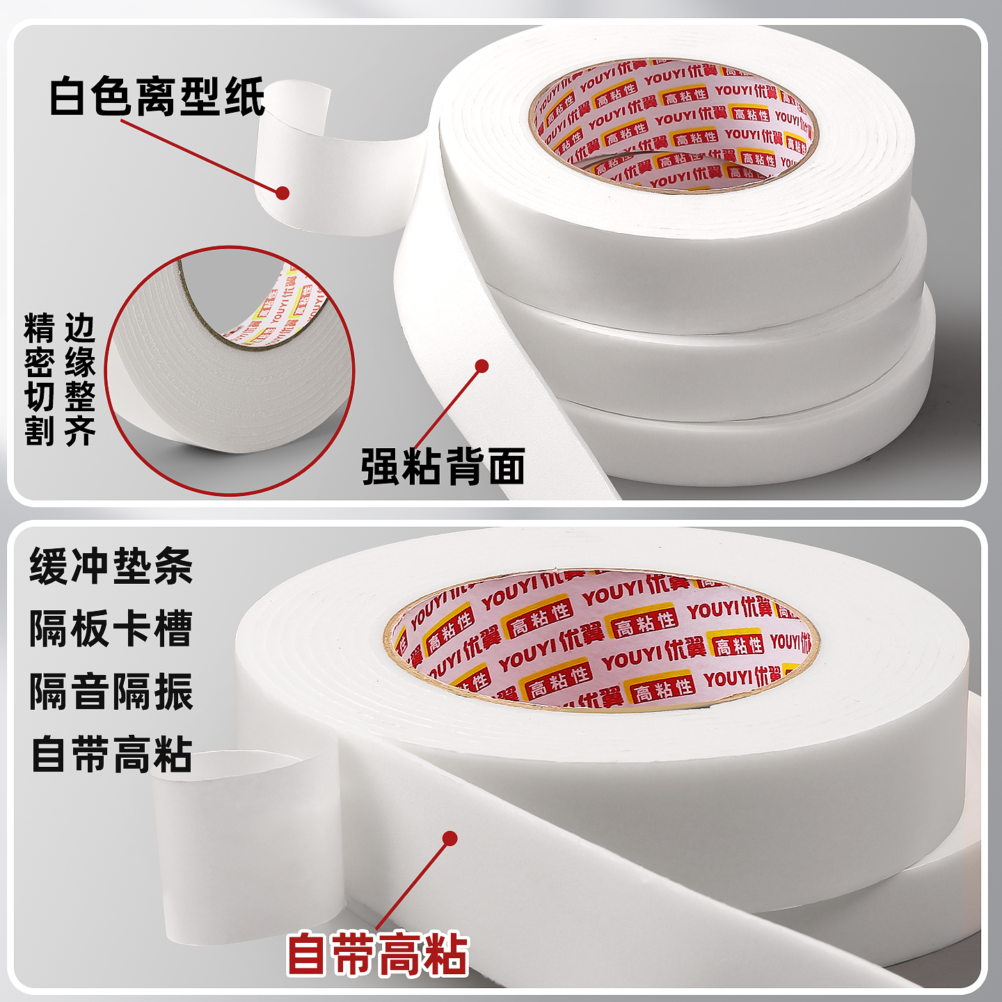 优翼双面胶带泡棉胶加厚高粘度固定墙面强力海绵双面胶泡沫胶两面胶条贴相框广告牌学生手工用胶带办公用批发