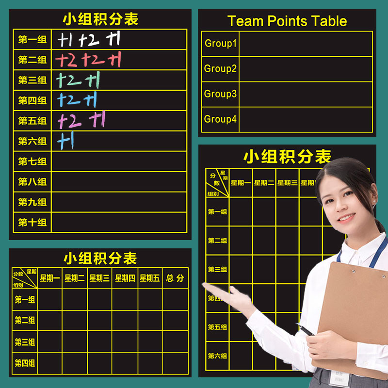 磁性小组积分表黑板贴班级小组管理量化积分表可擦写中英文版小学生儿童激励表现评比栏竞赛奖励惩罚磁吸表