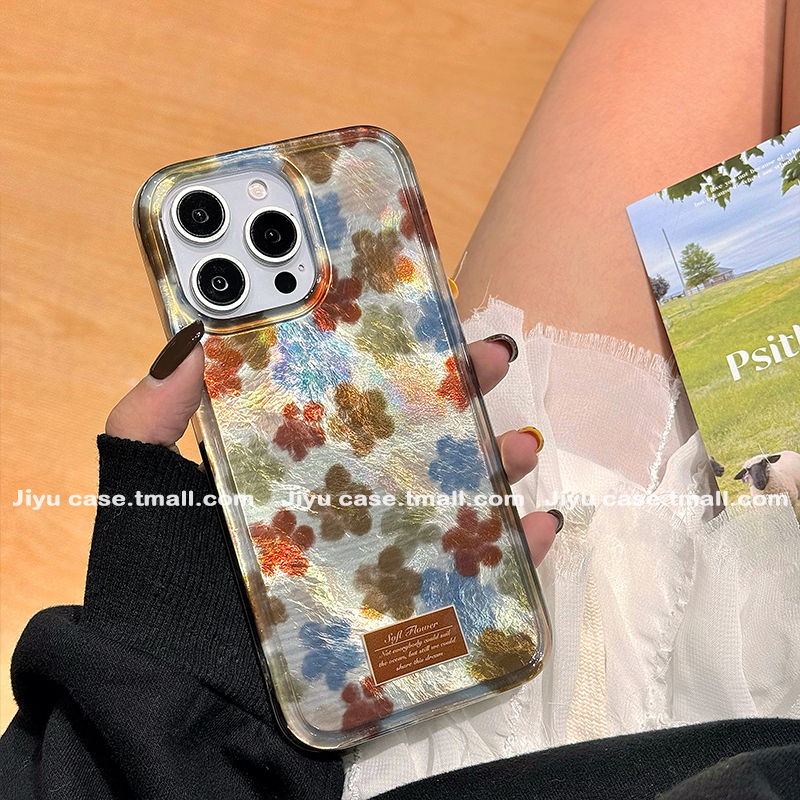 秋冬复古彩色油画花朵适用苹果16promax手机壳iPhone15新款13锡纸纹14pm小众16pro高级感15pro创意16全包外壳