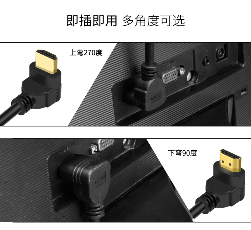 HDMI公对母转接线90度L型弯头高清延长线 270度 上下左右弯4K高清