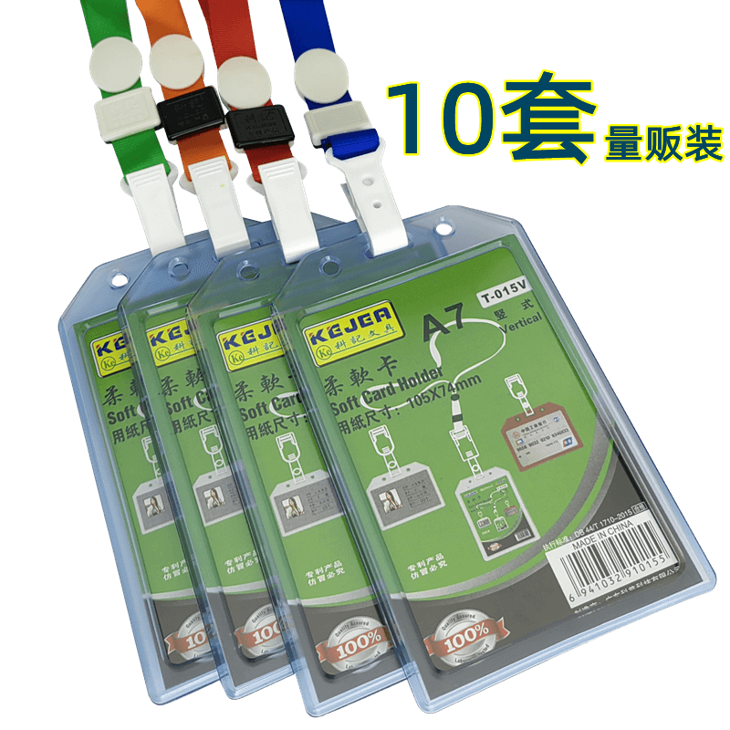 10套量贩装 科记T-015V卡套+K-1506 A7柔软卡 竖式胸卡 证件卡套竖式 科记文具 防冻 软质不防手透明卡厚封套
