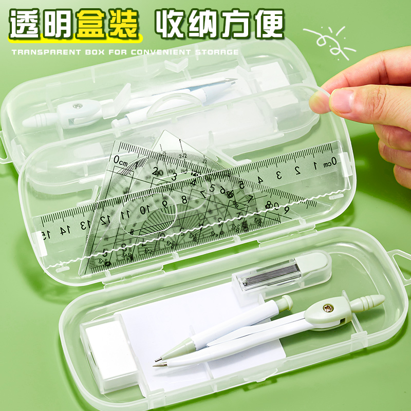 圆规尺子套装初中生专用尺规考试绘图工具小学生透明直尺三角板量