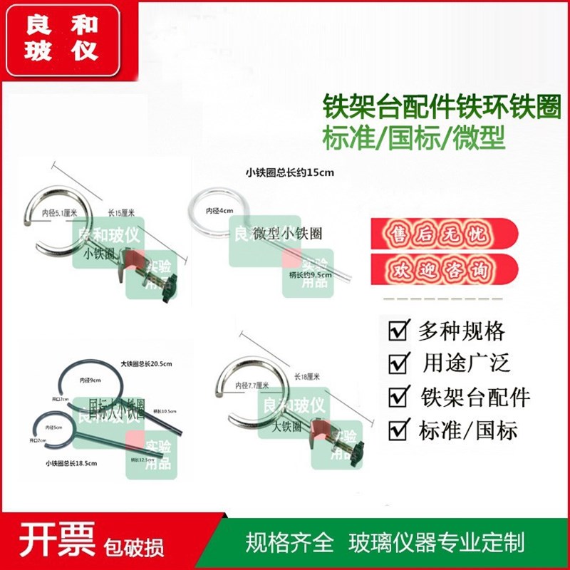 实验室用方座支架铁架台及铁环铁圈加热圈大小微型铁圈