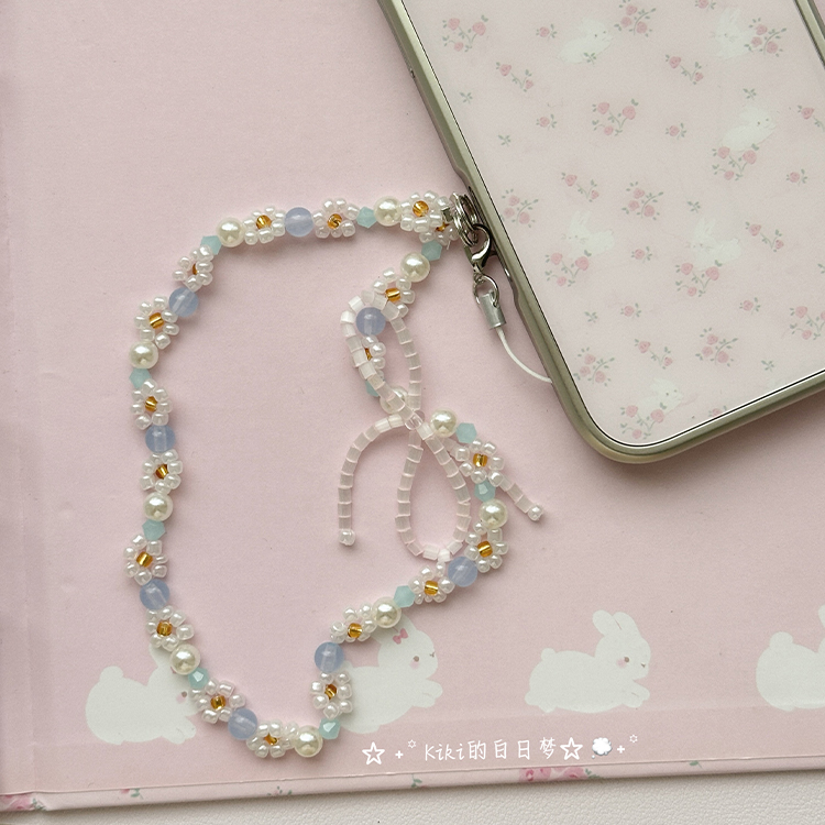 挂绳手机链串珠可爱防丢手机挂绳ccd相机链白色氛围小花蝴蝶结