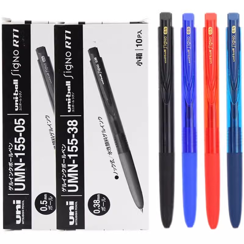 日本uniball三菱umn155中性笔黑色按动水笔限定新色考试刷题办公学生用K6笔替芯0.38/0.5mm签字低阻尼超顺滑