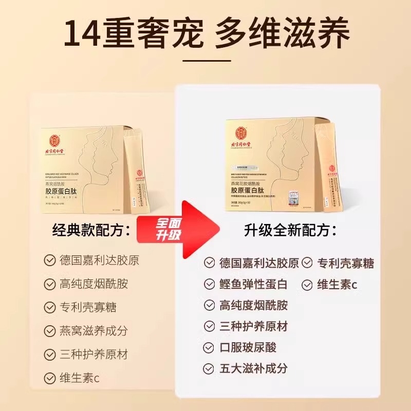 北京同仁堂胶原蛋白肽粉口服液燕窝烟酰胺液态饮官方旗舰店正品