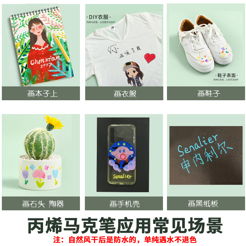 Senalier 申内利尔 丙烯马克笔单支自选DIY专用颜料 防水 手绘 画鞋套装细头彩绘手绘全套涂鸦笔高光笔粗头