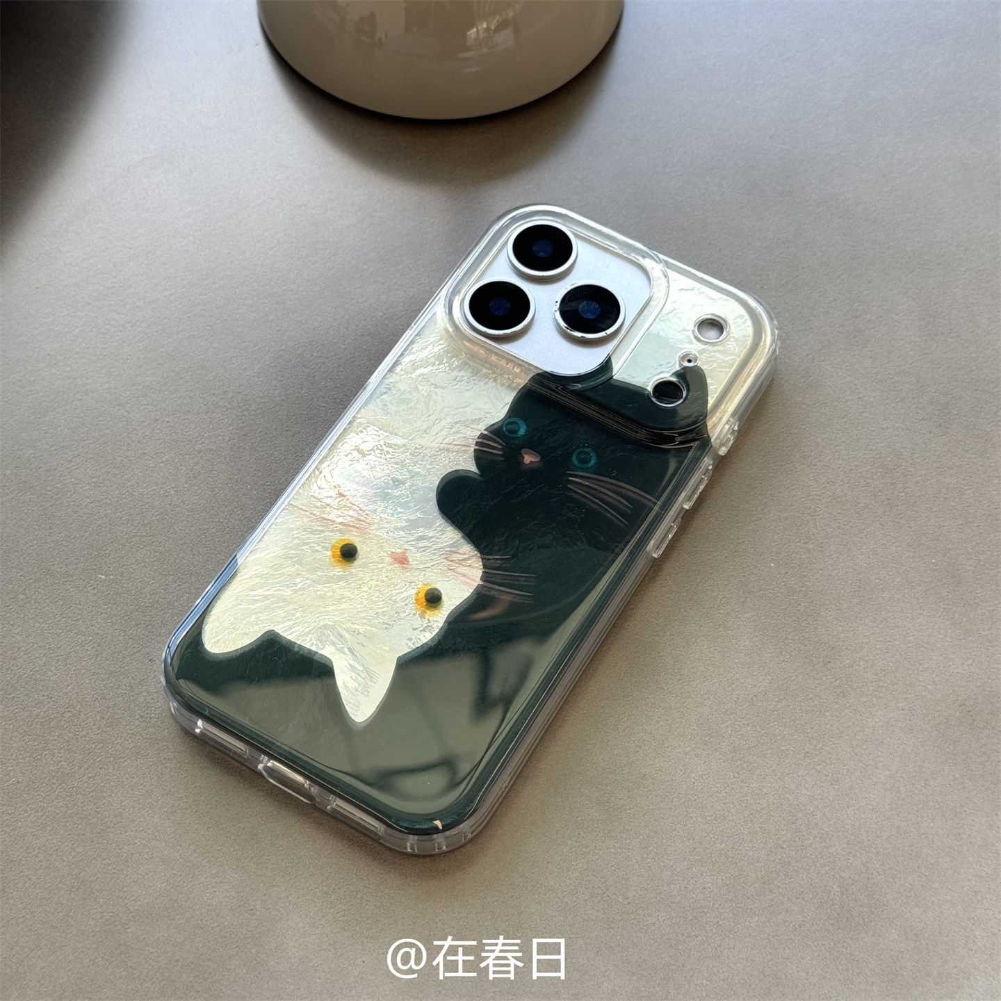 在春日小众高级感羽纱黑白猫咪手机壳17pro适用iPhone17promax链条保护壳苹果16promax全包15pro女生14pro