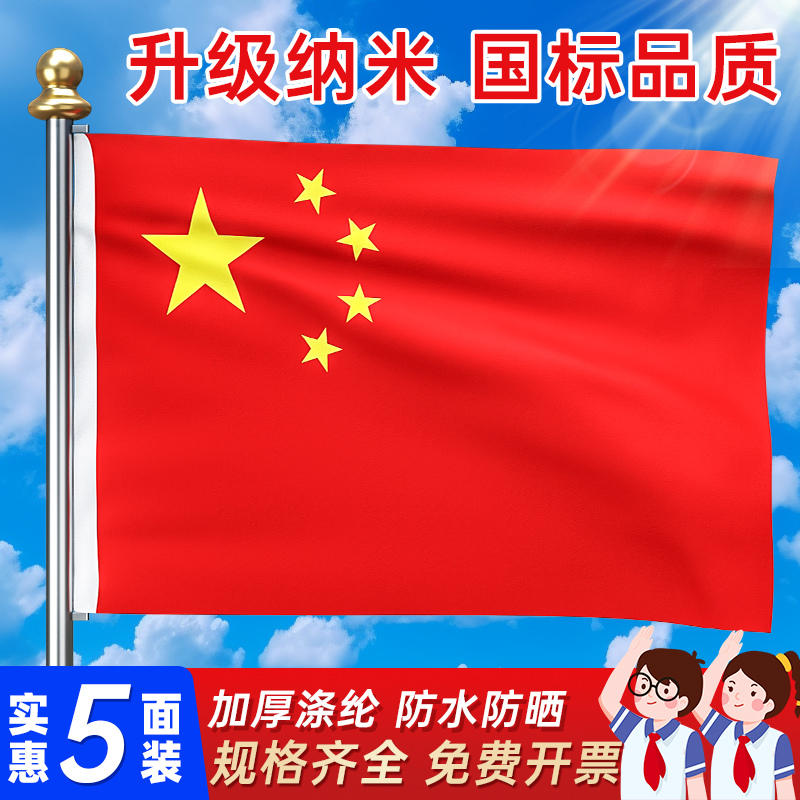 加厚中国国旗五星红旗户外手绘带杆旗帜1号2号3号4号5号6号纳米防水定制定做大号企业公司室外旗子装饰定做
