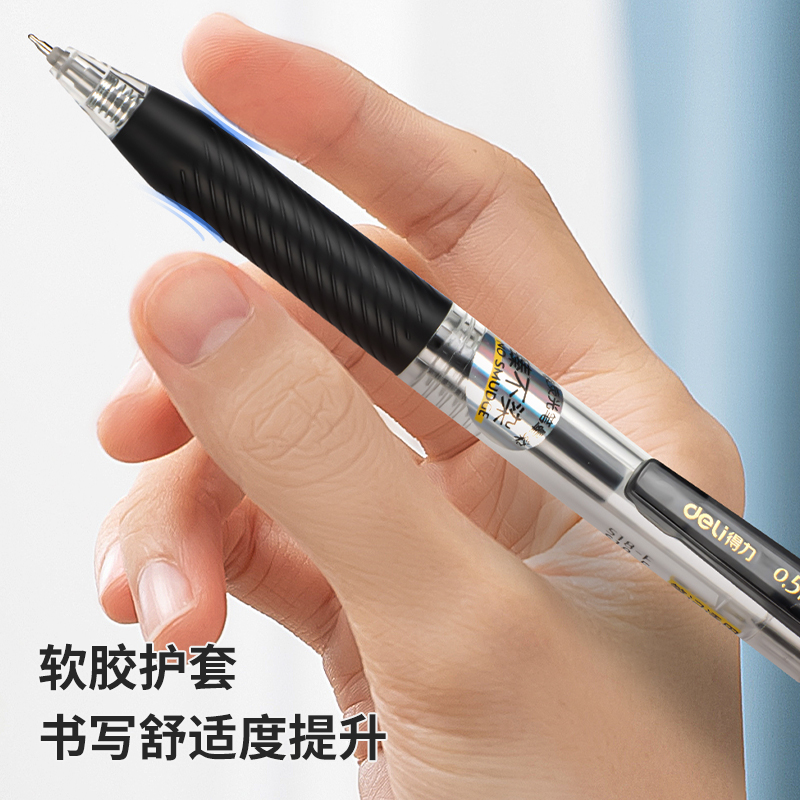 得力S18-F臻不染速干按动中性笔ST笔头0.5mm学生笔记抗荧光笔晕染