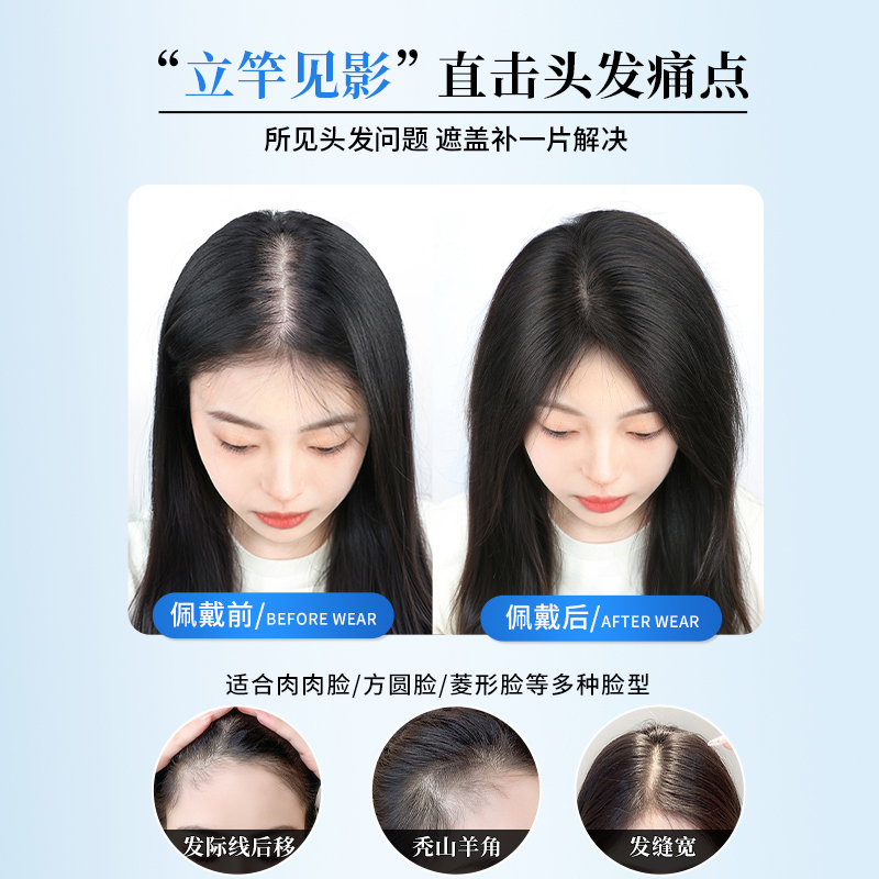 假发女片头顶补发蓬松真发遮白发高颅顶增发量轻薄无痕刘海假发片