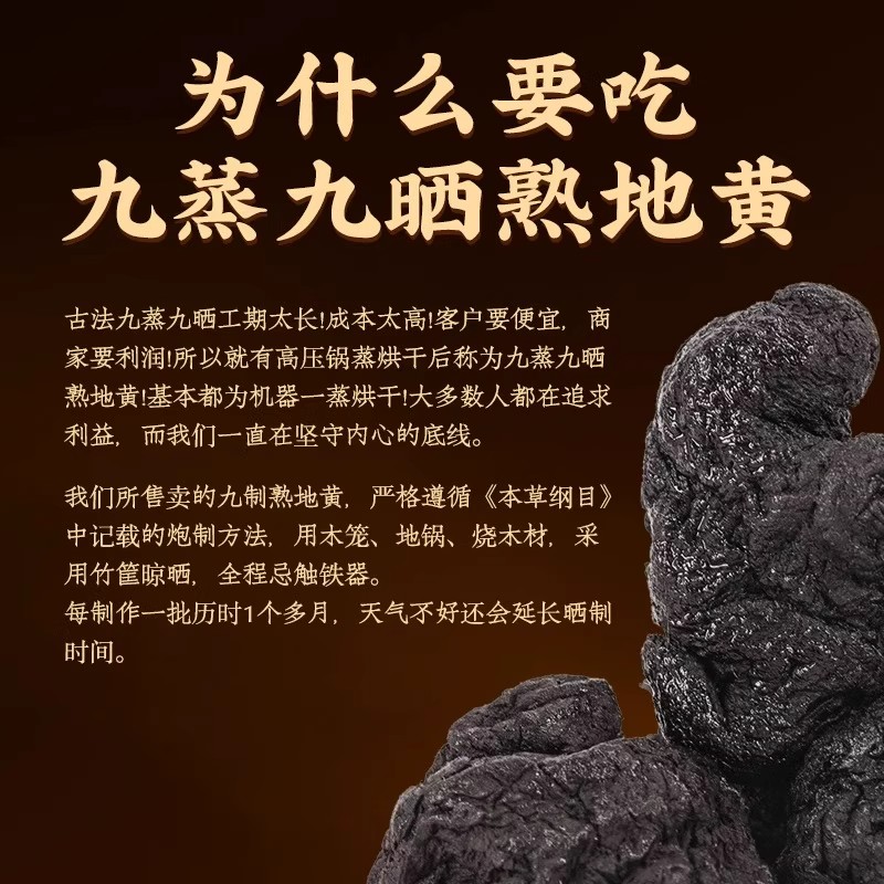 九蒸九晒熟地黄九制地黄非生地黄熟地干泡水熟地片
