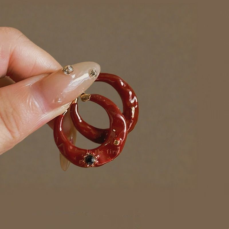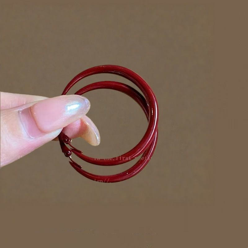 【我的脸很圆】复古港风红色滴油大耳圈气质秋冬安可拉红素圈耳环