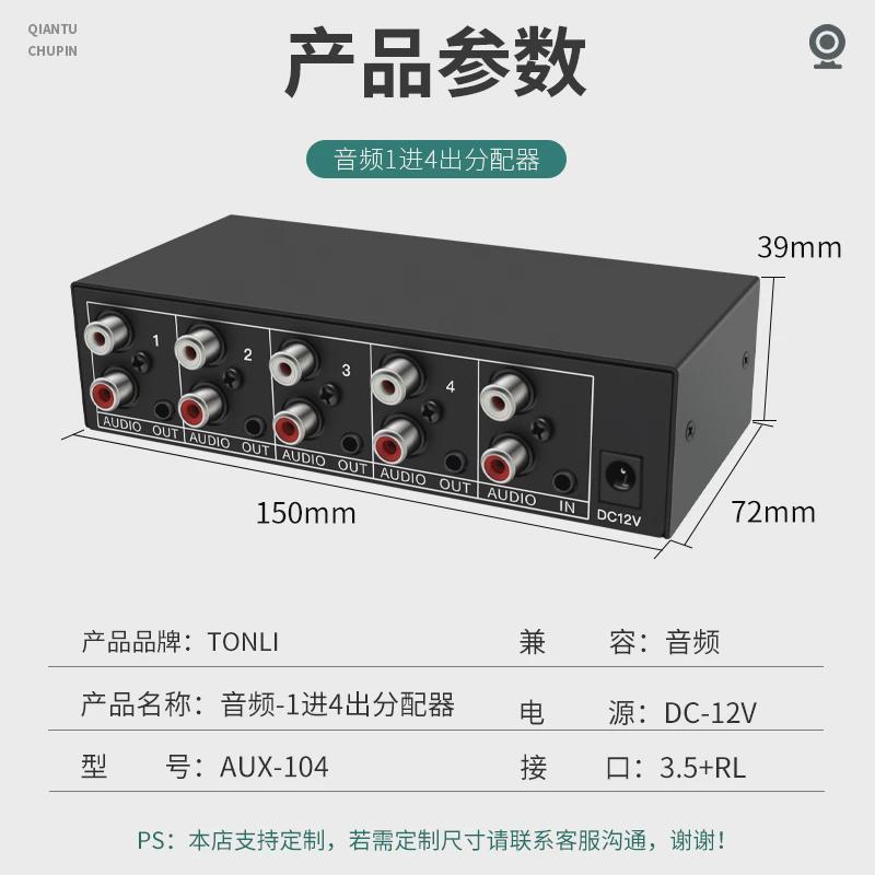 音频分配器一进四出1x4 4口立体声莲花音频3.5耳机座带运算放大