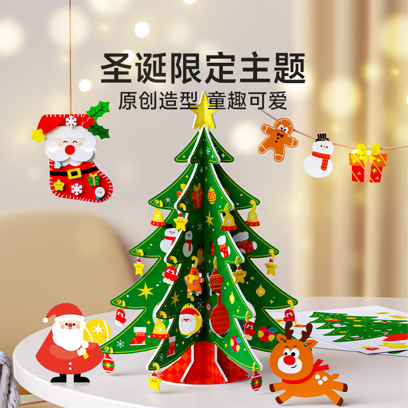【时光学】儿童趣玩立体手工圣诞树diy材料包自制配件装饰3d制作