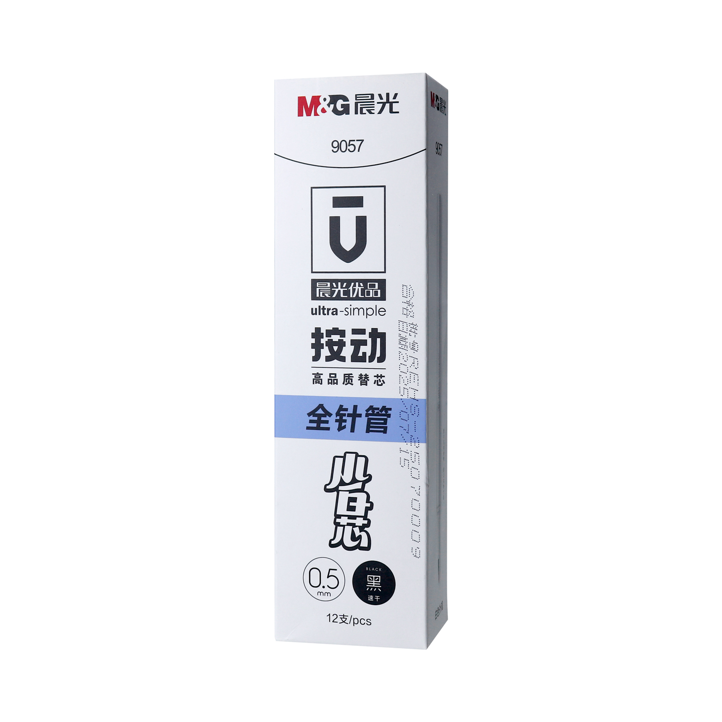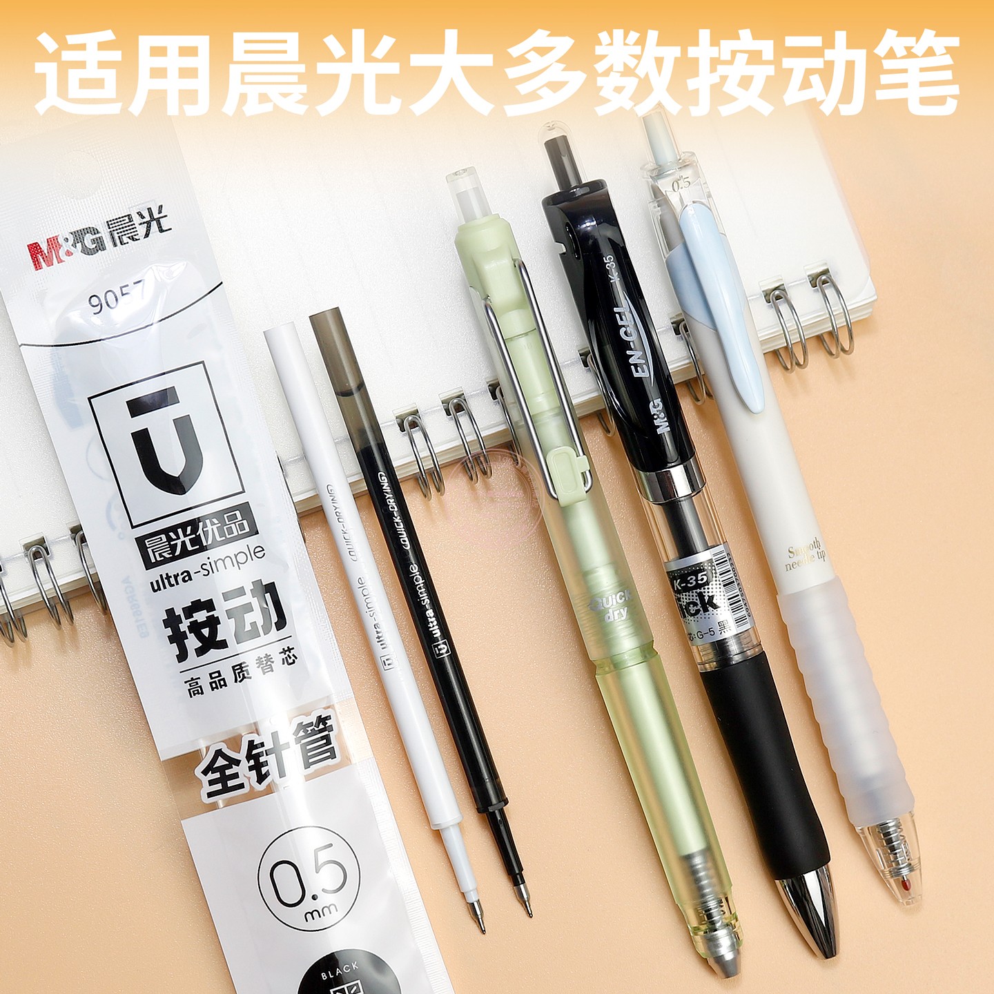 晨光优品按动中性笔替芯0.5加强型全针管小学生黑红色水笔芯9057