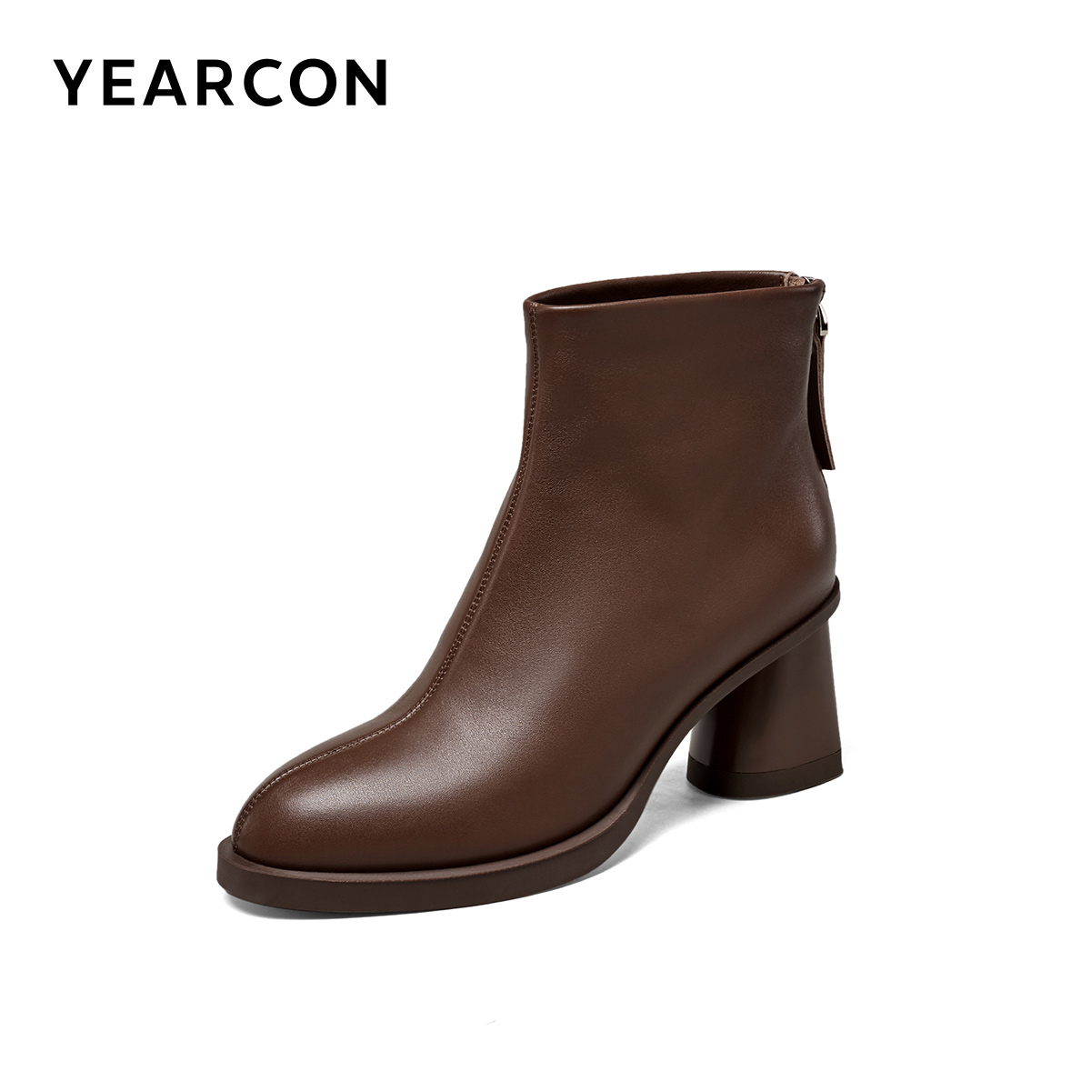 意尔康女鞋冬季真皮法式短靴粗跟通勤气质显瘦单靴及踝靴女士皮鞋