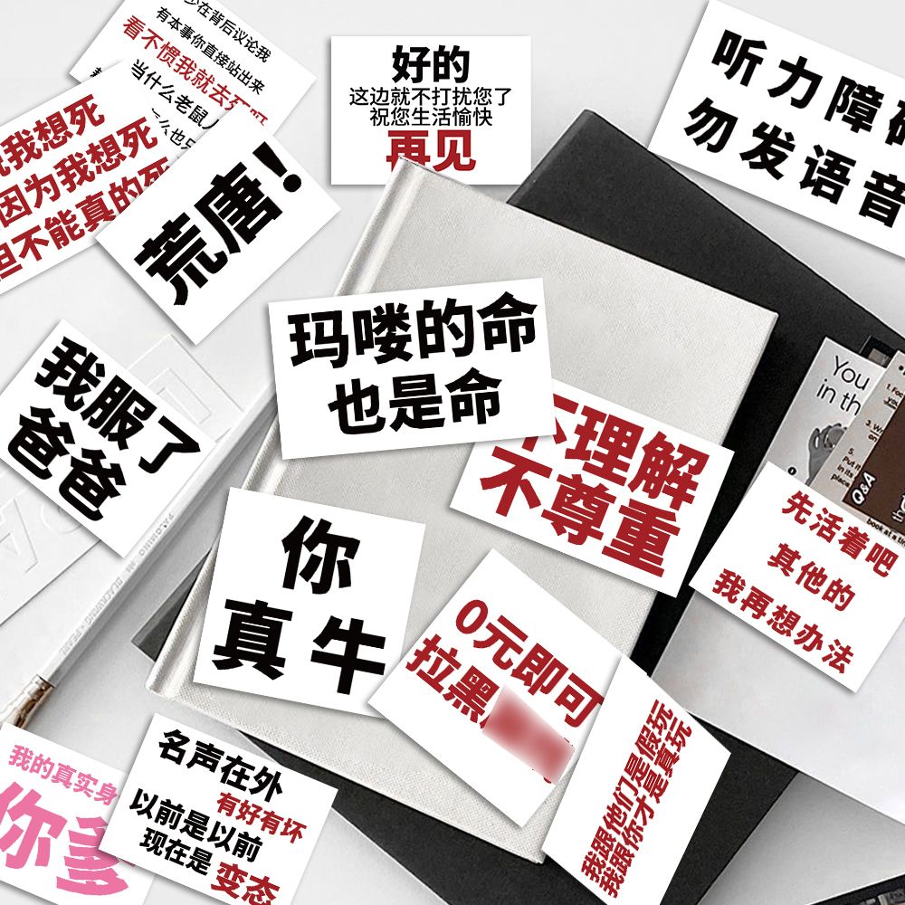 110张精神状态发疯文学贴纸装饰手账素材ins趣味沙雕搞笑防水贴画