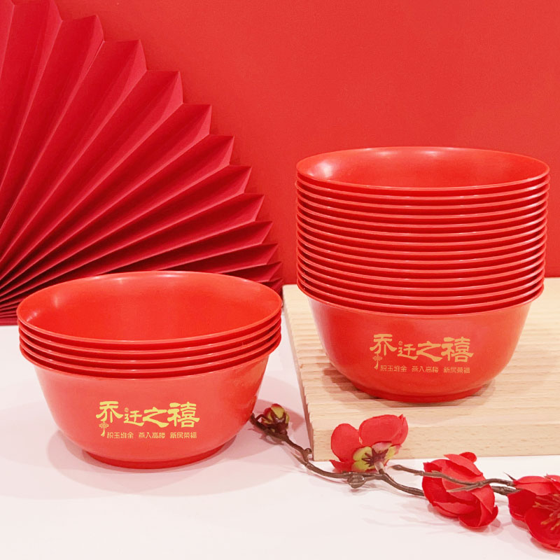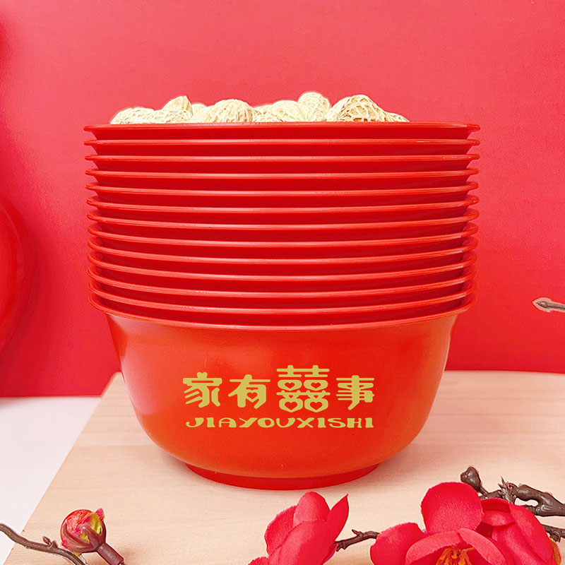 乔迁之喜宴过年结婚家有喜事一次性饭碗红色印花食品级加厚大圆碗
