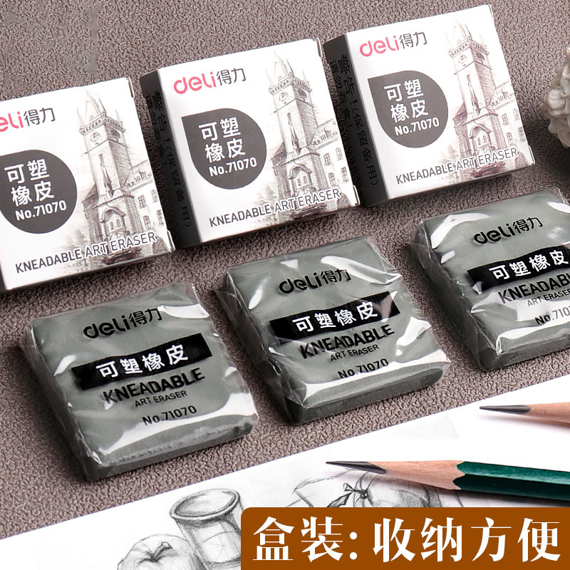 得力可塑性橡皮擦拉丝高光素描美术生专用小学生擦得干净不留痕炭笔可擦樱花儿童强粘性无碎屑少屑软的像皮檫